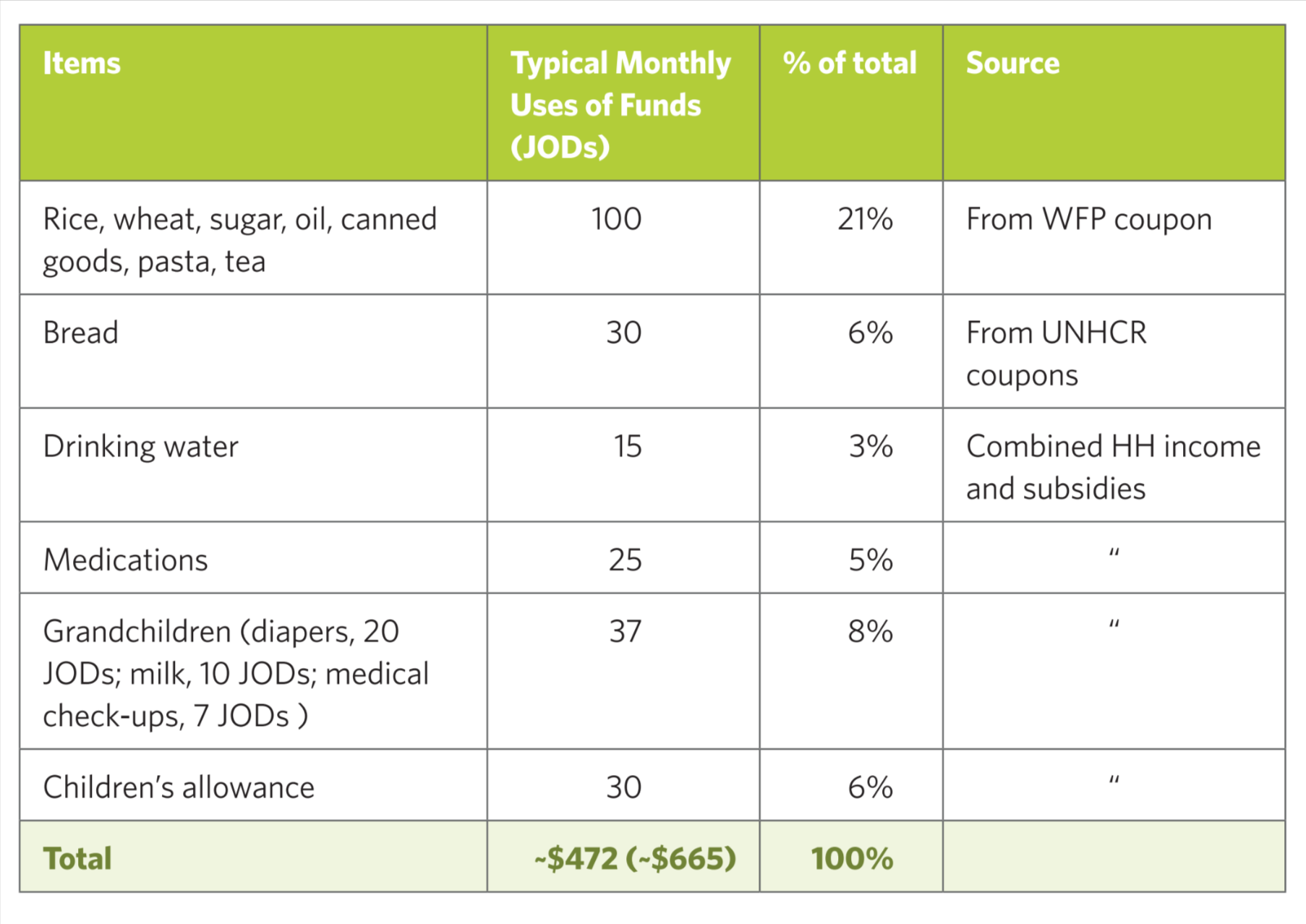 Abu Ahmad and Om Ahmad, an elderly Syrian couple, live in the city of Karak in Southern Jordan. They share their house with their younger son, who got married around two years ago and recently had a baby. Before the pandemic, they had a stable situation as their younger son worked at a café and received about $250 per month. The couple also received cash assistance of about $200 total from both UNHCR and WFP—less than half of the household’s annual income (47%) in the year before the pandemic. This helped them secure basic needs like rent and some food expenses.