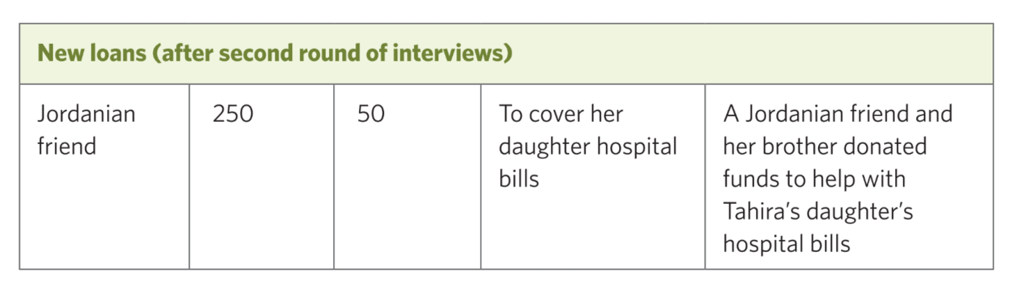 Even though most of the household income came from work, Abu and Om Ahmad remained financially vulnerable and faced multiple setbacks. For instance, every year, when his son was not working for two months as the university café closed, they had to borrow money to meet the monthly expenses, showing an absence of savings. During the research period, Om Ahmad fell and hurt herself, and the hospital bills and medication cost $850. The family had to cover this by borrowing from their family.