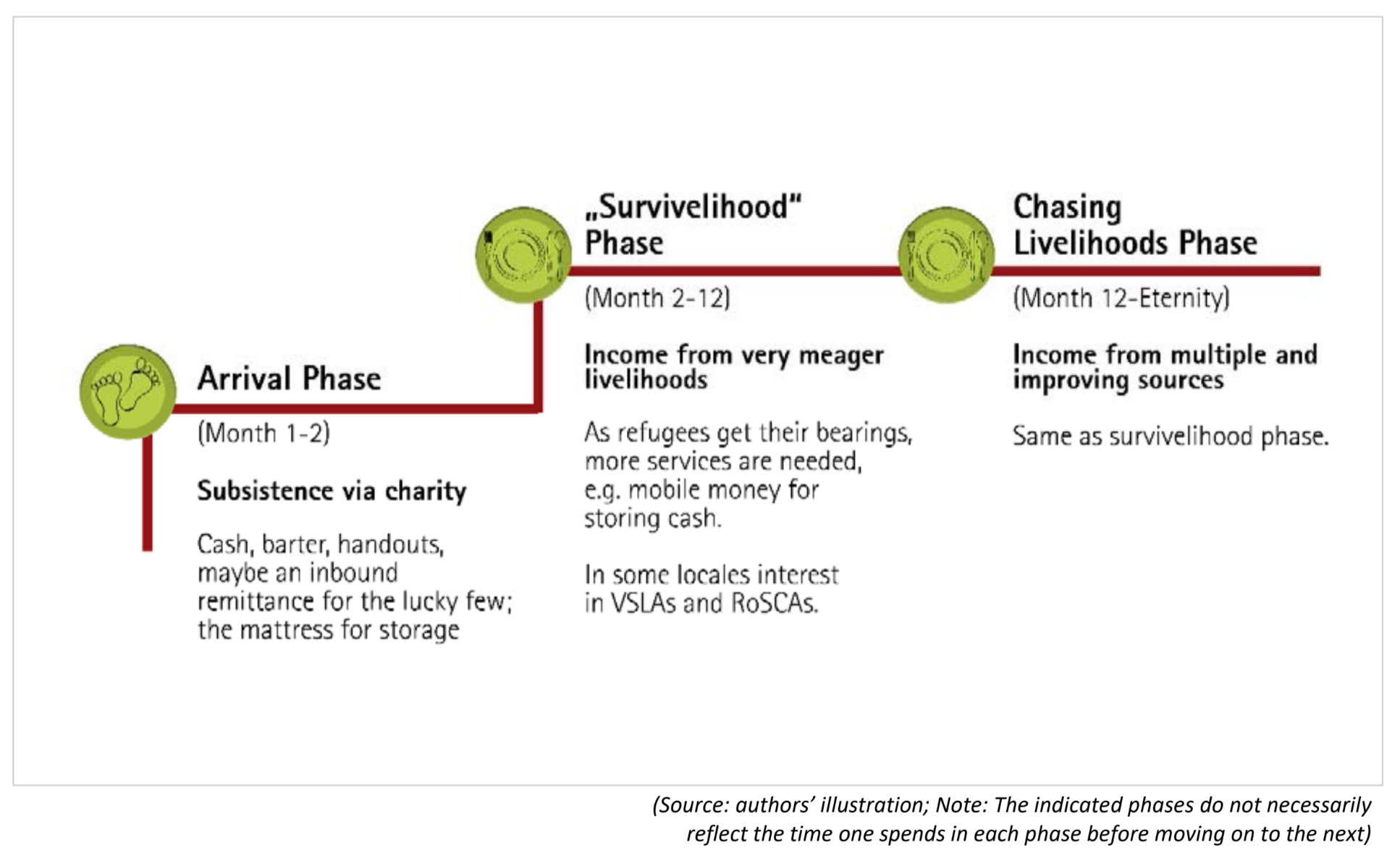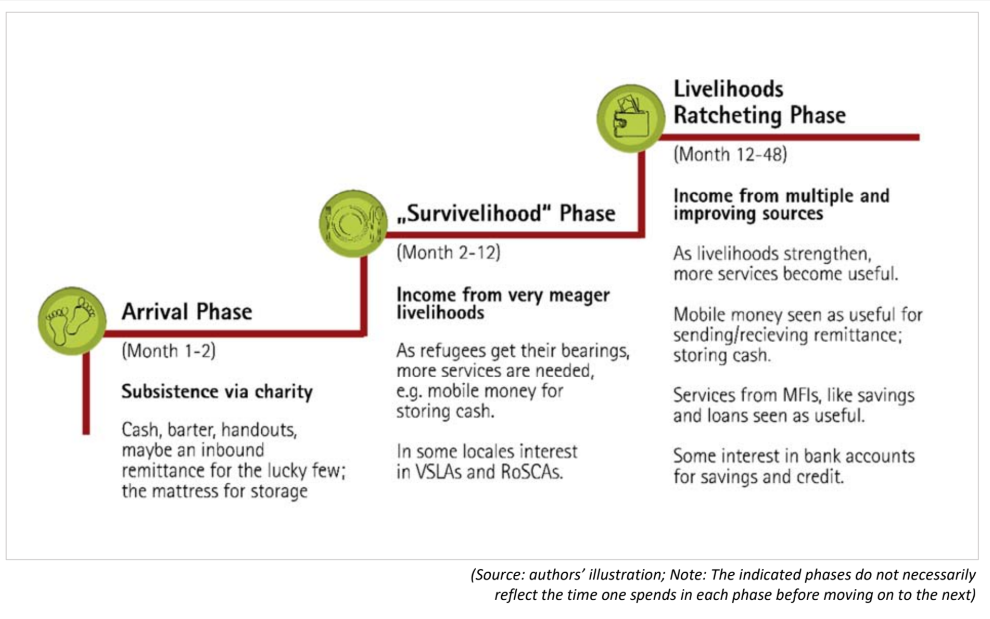 The need for and the uses of financial services co-evolve with progressions in the diversification of refugee livelihoods.