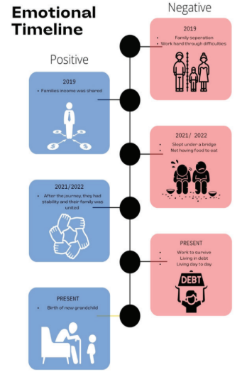 The guarantee of housing allowed Frankie, Higo, and Annie to follow one year later, now with a new grandchild. Annie had given birth to a son, Anis. After the year-long separation, a harrowing journey without food or shelter, the responsibilities of working, caring for Jimmarys alone, and finding the rental house for her family, Francis finds her happiness in being together once again. Looking back at the year before they arrived, she sees the toll it took on her mental health and her ability to imagine a hopeful future.
